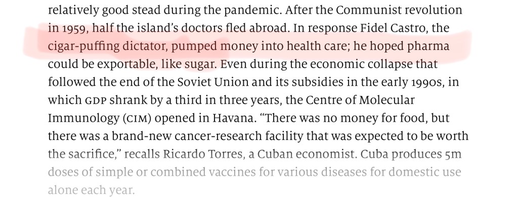 Yine Economist’e göre, Küba’nın sağlık alanındaki motivasyonu, şeker ihraç edemiyor diye sağlık ihraç etmekmiş. Bu sanki çok kolaymış gibi.