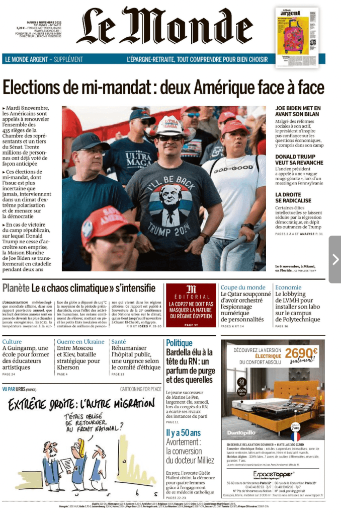 Le Monde, Trump’ın geri gönüş yolculuğunun başladığı bu ara seçimler için öyle güzel, öyle doğru bir fotoğraf kullanmış ki… Berger da onaylardı sanırım.