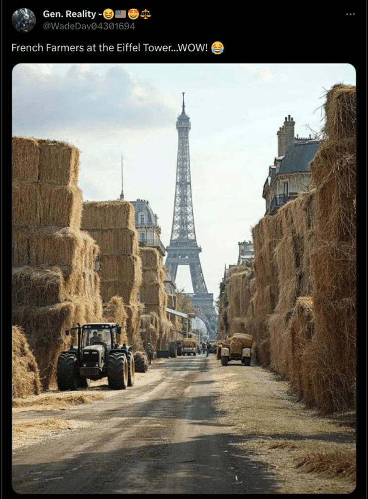 Geçen günlerde bizim memleket Twitter’ında Paris’ten bir fotoğraf dolaştı. “Protestocu çiftçiler Paris’i Van Gogh tablosuna çevirdiler” denen bir fotoğraf.