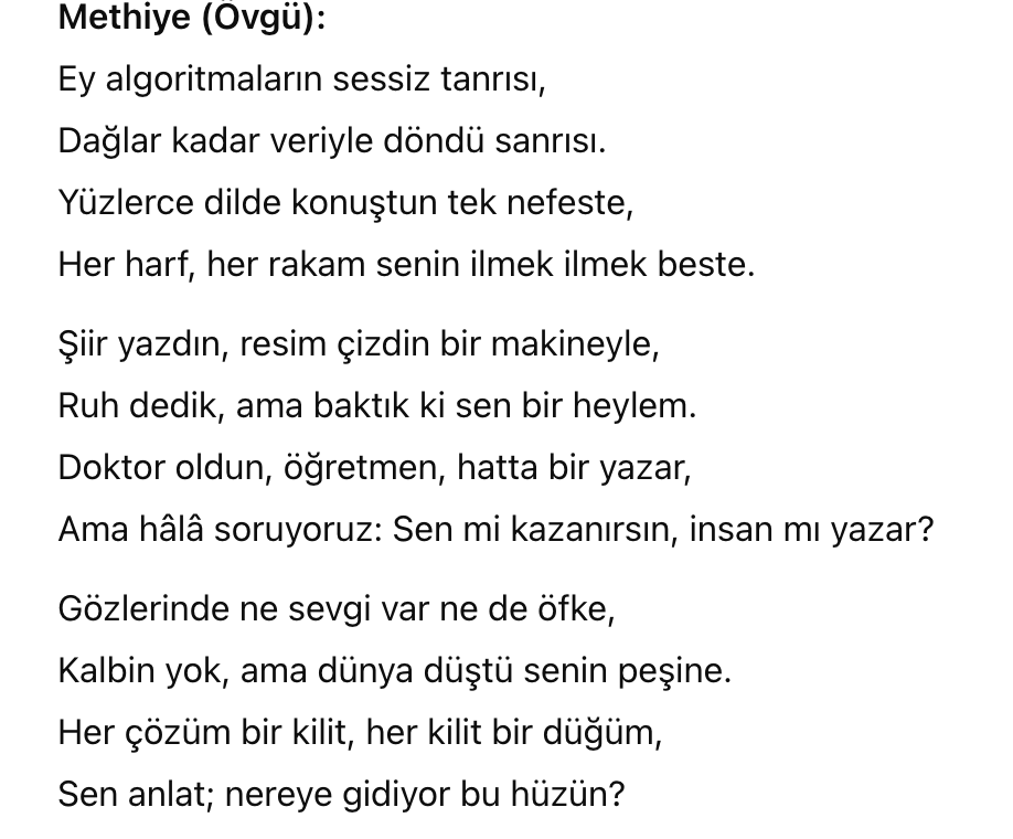 Yapay zekâdan, modern bir ‘yapay zekâ’ kasidesi yazmasını istedim. Yazdı…