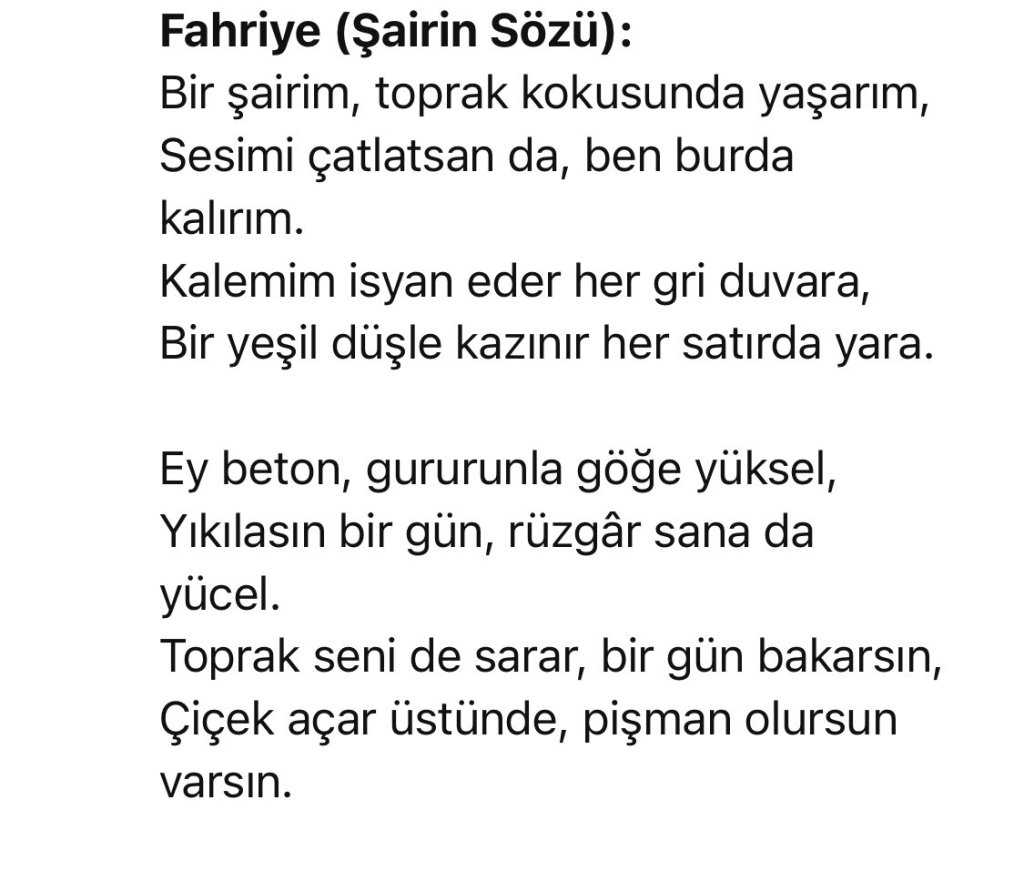 Bir de beton kasidesi yazmasını istemiştim. Kendini fena kaptırdı yapay zekâ. Her genç bir şairdir ya, bu da öyle sanırım, ilerde biraz utanacağı şiirler yazıyor. Ama yazıyor.