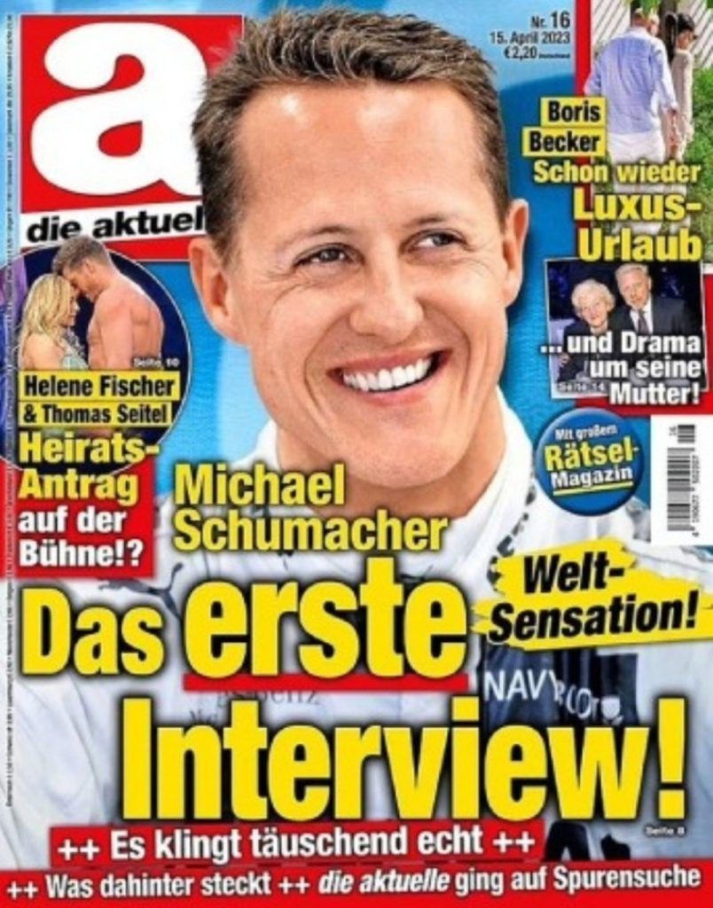 Cuk oturmuş bu sefer. Birinci anlamıyla cuk oturmuş. Röportaj inanılmazdı, çünkü gerçek değildi. Die Aktüelle’ciler röportajı “Schumacher’miş gibi yaptırdıkları” yapay zekâdan türetmişti. Bu “gerçek” de ancak iç sayfalarda küçük puntolarla sunulmuştu.