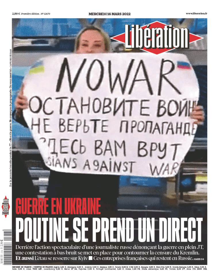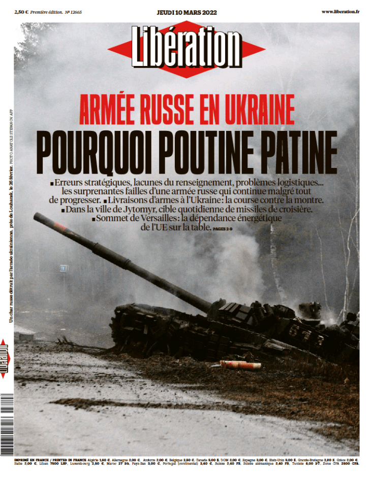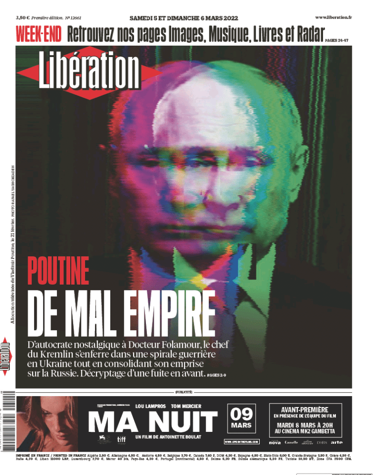Gazeteciliğe hava gibi su gibi ihtiyaç duyulan günler… Rusya’nın Ukrayna’da yürüttüğü savaş, Rusya dışında her yerde haber. Fransız Libération gazetesinin isabetli ve maalesef trajik manşetleriyle tarihe düştüğü notlar herkesten ayrılıyor. Bu savaşı başlatanlar ve sürdüren bir gün bunlarla hatırlanacak.